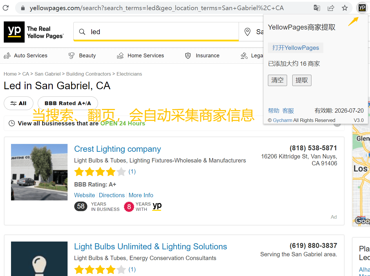 2. 已支持:yellowpages.com, yellowpages.com.vn越南, yellowpages.com.br巴西,陸續會開通其它站點